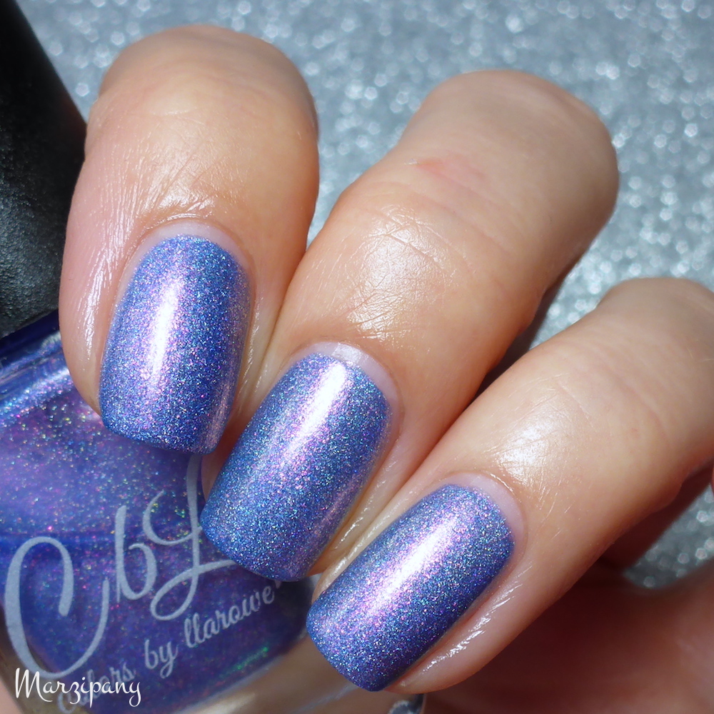 Der Lack ist ein kleines Chamäleon; ich glaube, der sieht bei jedem Menschen anders auf den Nägeln aus. Ich habe schon Bilder gesehen, da war der Lack regelrecht Hellblau und der Schimmer beinahe Grün. Bei mir überwiegt eindeutig die Mischung Periwinkle/Kornblume und Pink. Was mich natürlich gar nicht stört, da ich diese Kombination einfach toll finde! :)